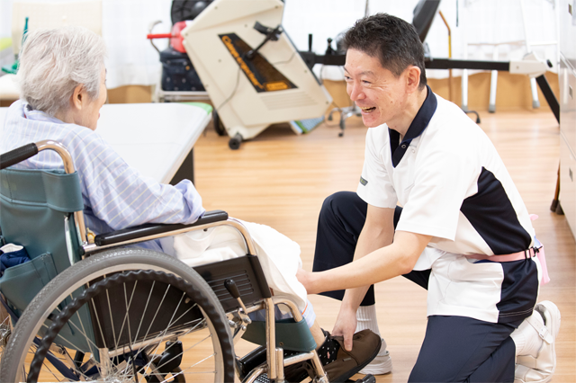 マイクロ波、ホットパック、干渉波などを利用した物理療法の他、国家資格を取得している理学療法士や作業療法士により身体機能改善の他、自宅での自主練習、日常生活活動向上の為の提案をさせて頂いています。